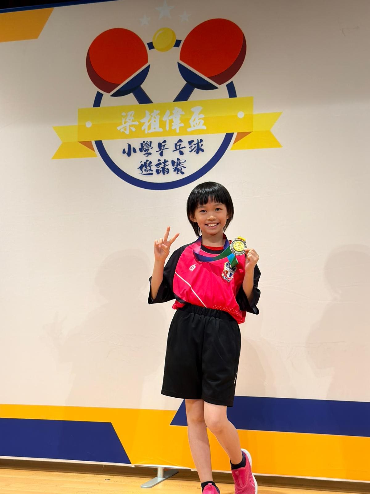 上午,4D陶芊妤同學在『梁植偉盃』乒乓球(單打)小學邀請賽2026中獲得女子組殿軍。
